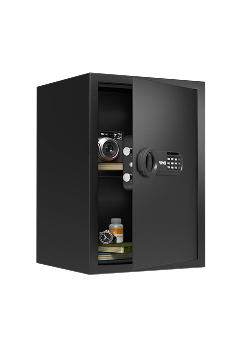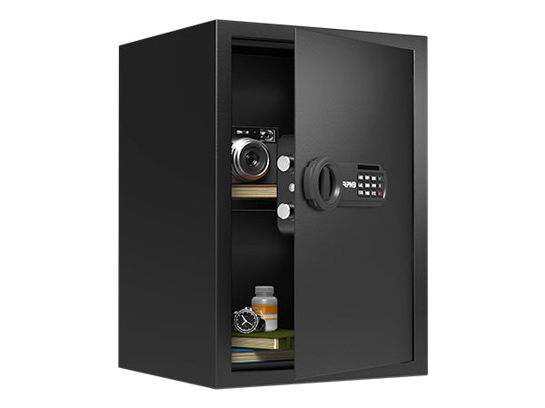PACKAGING | 1 x Fireproof Safe | 2 x Backup Keys | 1 x Expansion Bolt | 1 x Adjustable Shelf | 1 x Handle Spoke Kit | 1 x Instruction Manual