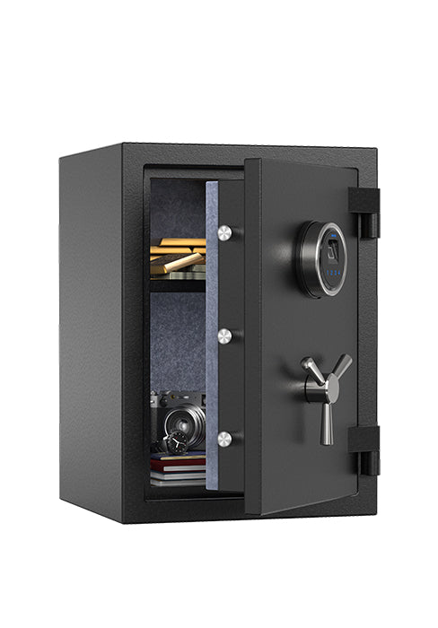 PACKAGING | 1 x Fireproof Safe | 2 x Backup Keys | 1 x Expansion Bolt | 2 x Adjustable Shelves | 1 x Handle Spoke Kit | 1 x Instruction Manual