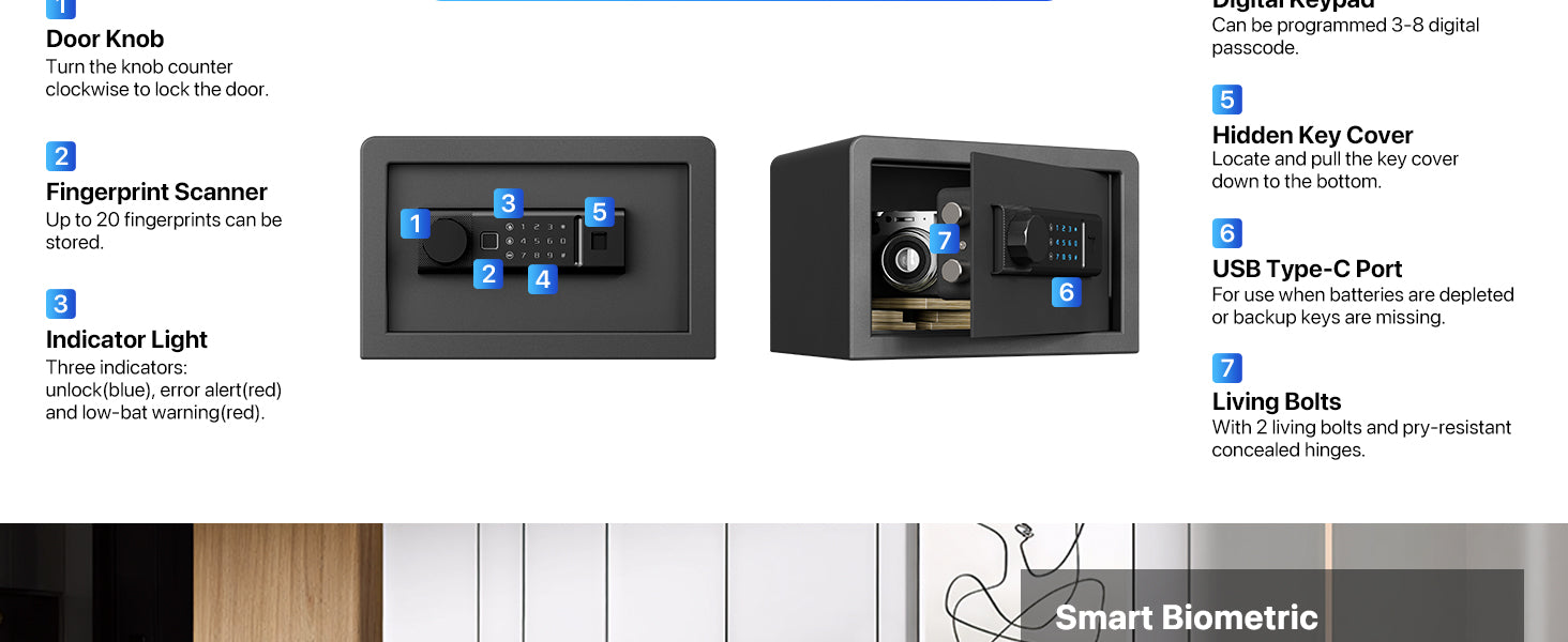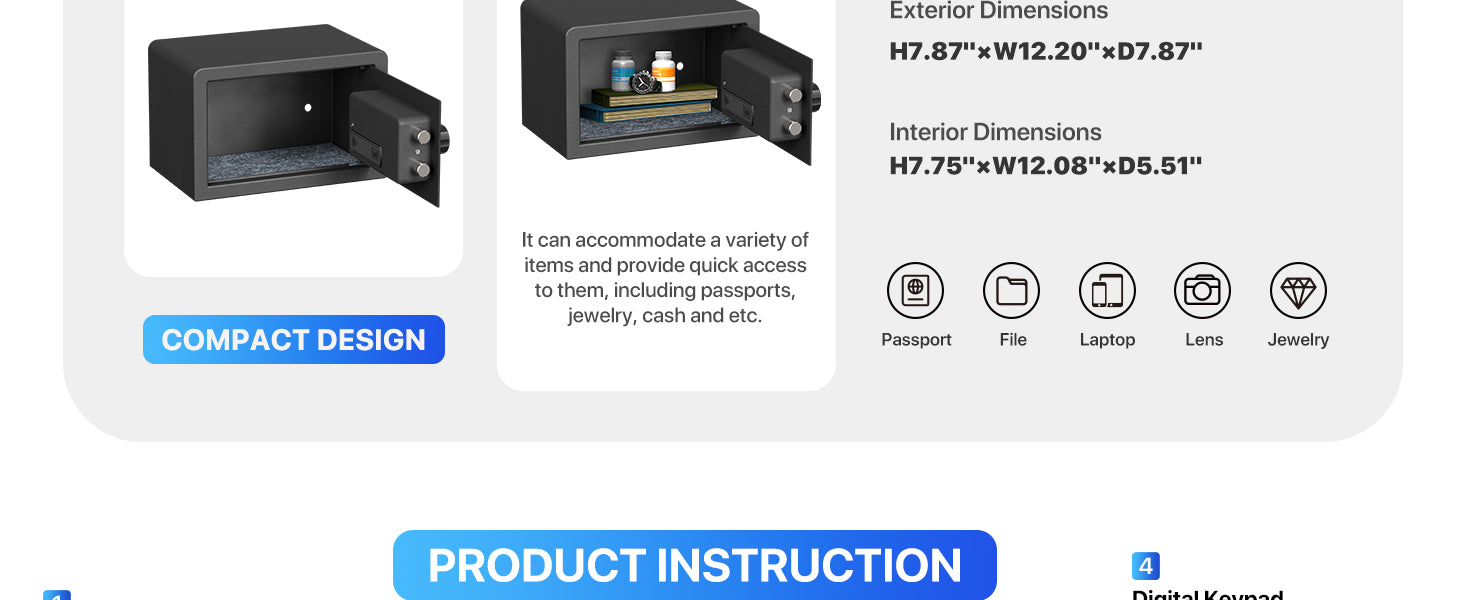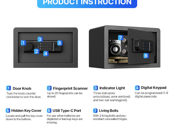 DO NOT PLACE OR STORE THE BACKUP KEYS INSIDE THE SAFE AT ANY TIME. IF THE BATTERY FAILS, YOU WON'T BE ABLE TO OPEN THE SAFE.