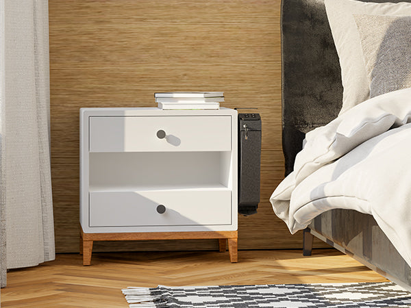 Can store one handgun with no light or optics of any kind. The bedside gun safe automatically slides out when the correct passcode or registered fingerprint is used, allowing you to store your pistol in seconds.