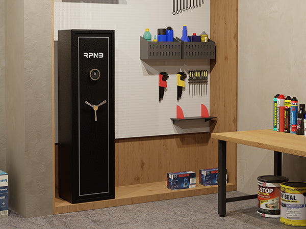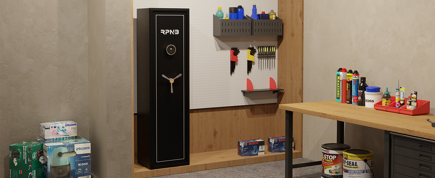 RPNB fingerprint long gun safe is made of anti-theft solid steel for long-lasting use. Suitable for the garage, closet, home, office and more.