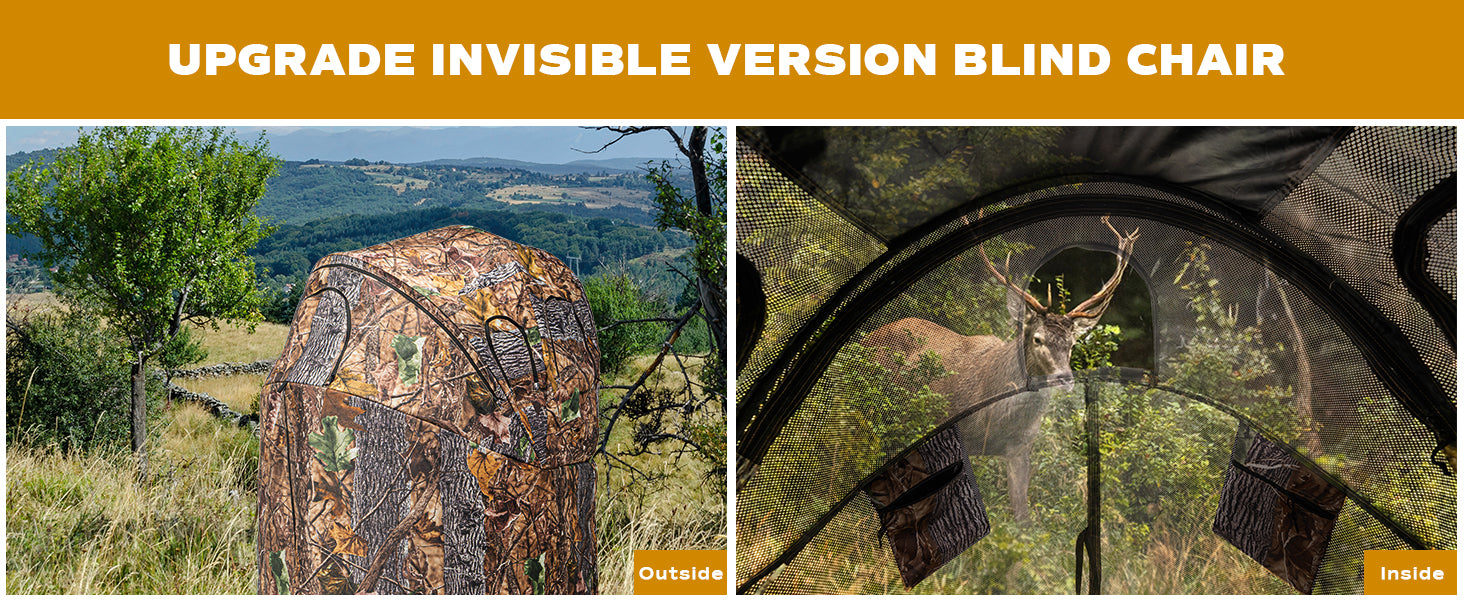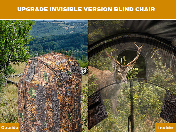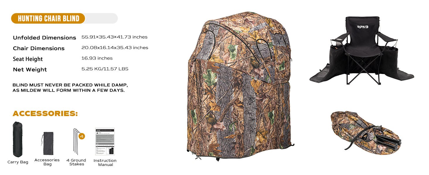 RPNB hunting blind chair adopts a fully enclosed design and is equipped with the one-way 270-degree see-through mesh, allowing hunters to see their surroundings without being seen. Add different angles and sizes of windows, maximizing your hunting experience without any obstruction. Perfect for turkey, deer, elk, antelope, or any other concealed hunt