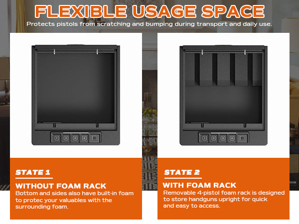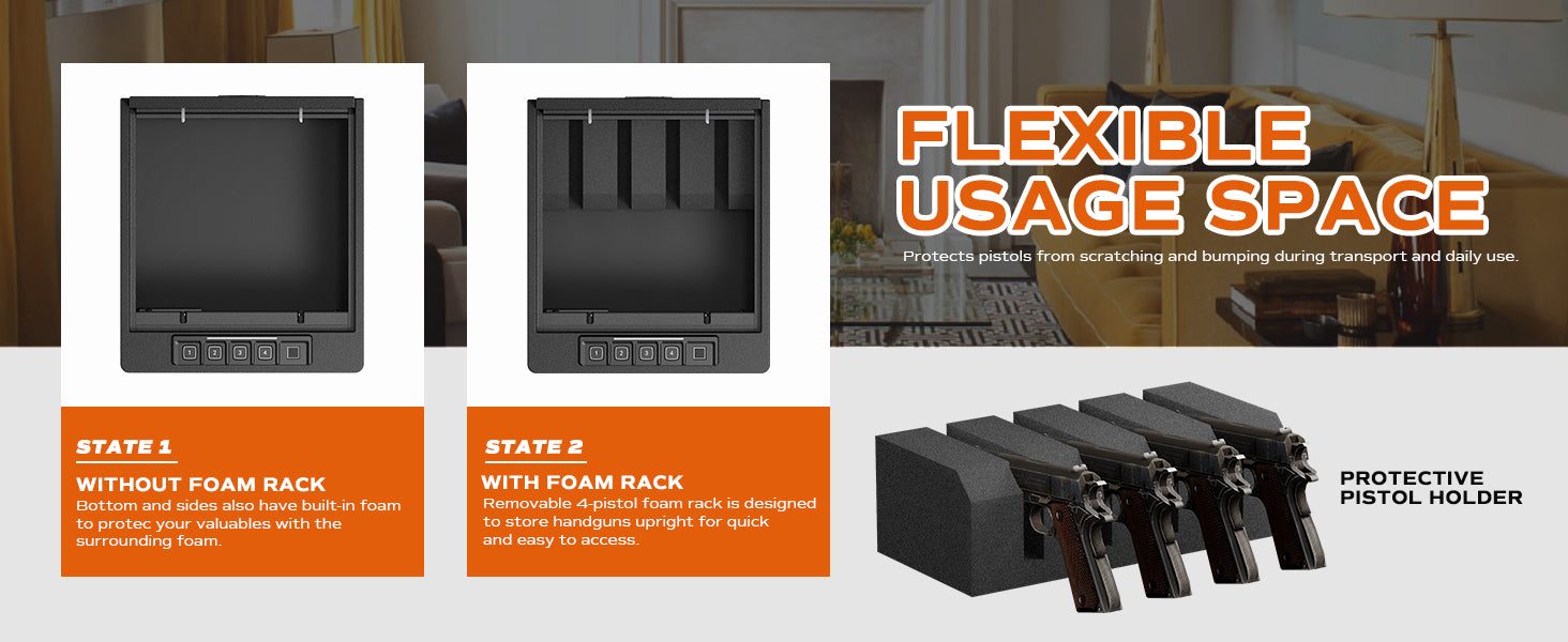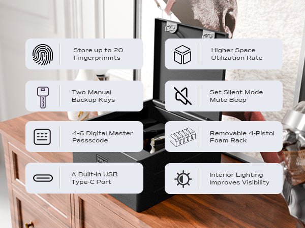Equipped with 4-pistol foam rack, dual anti-impact latches, interior lighting and emergency Type-C Port.